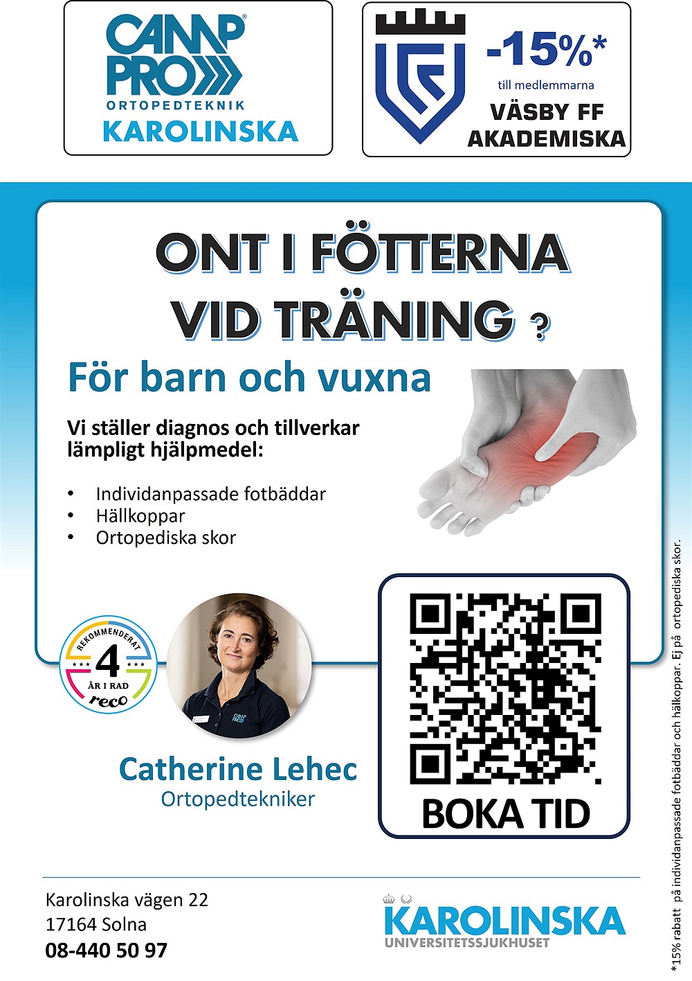 Genom samarbetet kan alla våra medlemmar – från barn till seniorer – få professionell diagnos och tillgång till individuellt anpassade fotbäddar, hälkoppar och ortopediska lösningar, dessutom med 15 % medlemsrabatt.